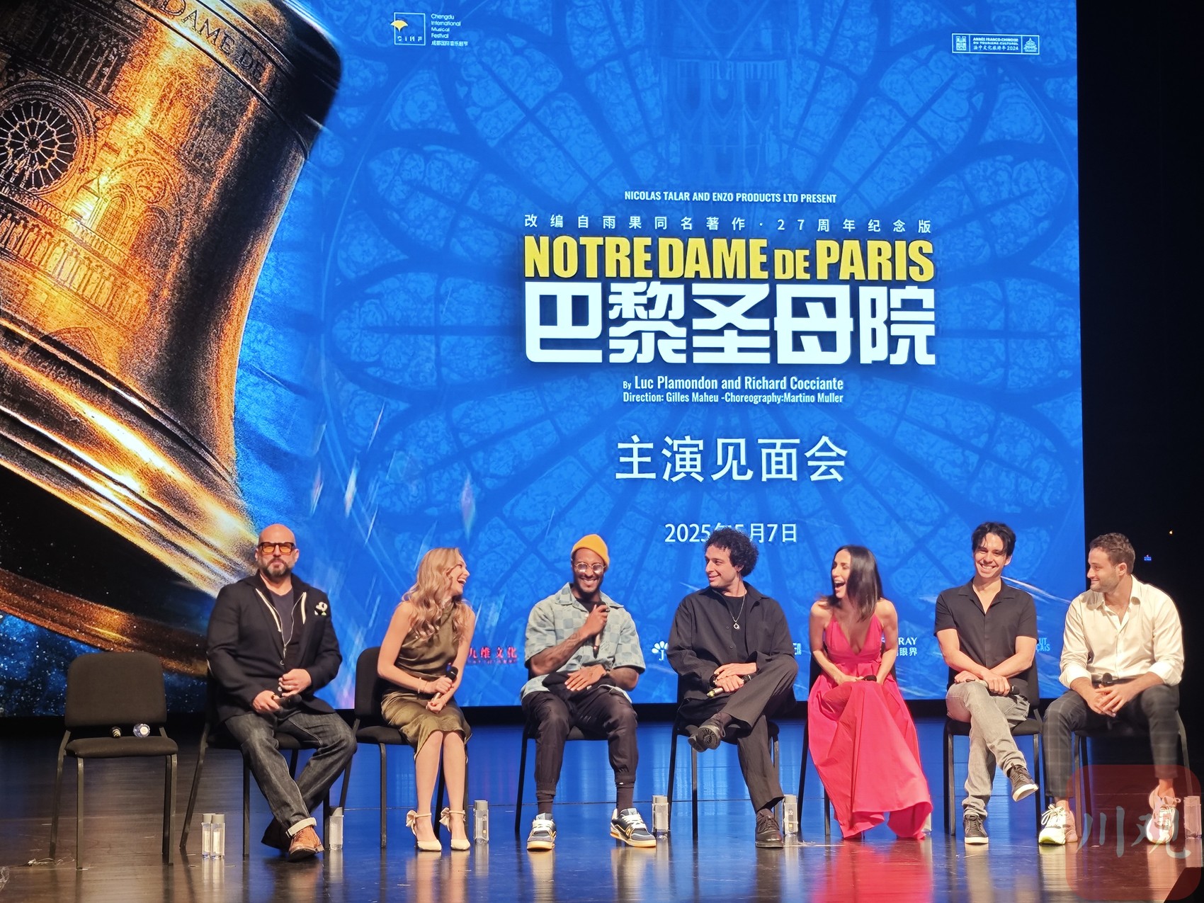 5月7日晚,成都城市音乐厅·戏剧厅,2025成都国际音乐剧节新闻发布会暨法语原版音乐剧《巴黎圣母院》主演见面会举行。活动介绍,从5月8日起,《巴黎圣母院》将领衔10余部知名音乐剧来蓉演出。