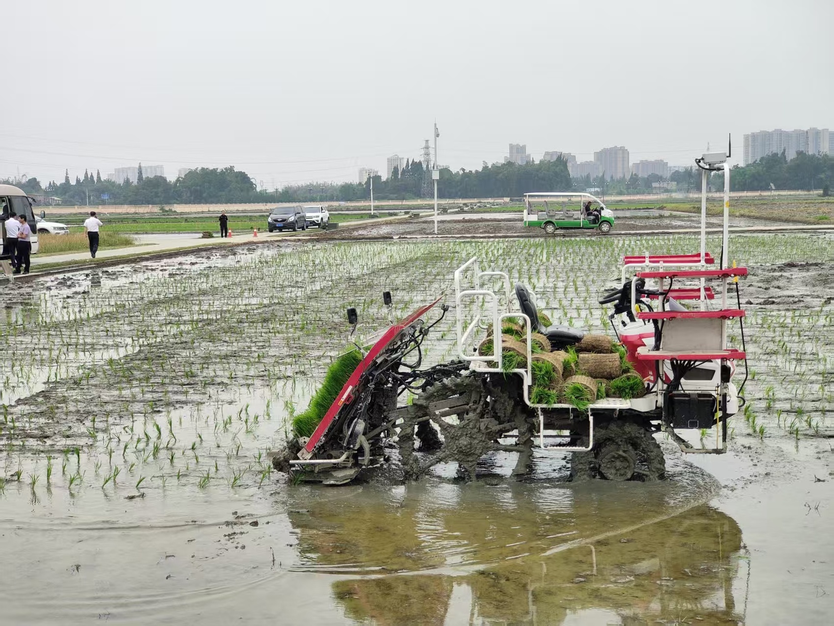 在成都市新都区进行的无人水稻机插秧。 徐灿红 摄