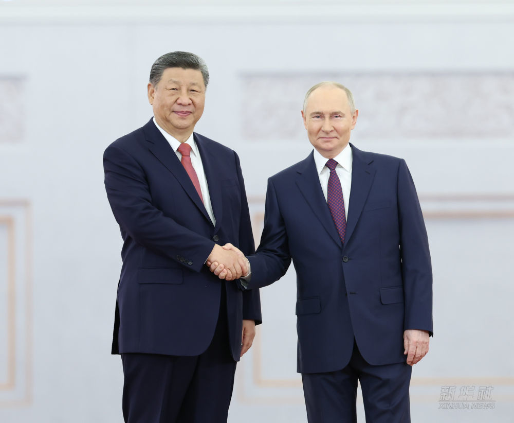 当地时间5月8日上午,国家主席习近平出席俄罗斯总统普京在克里姆林宫举行的欢迎仪式。