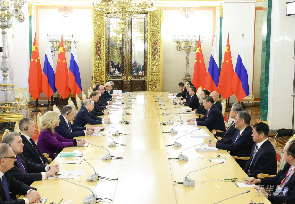 新华社莫斯科5月8日电(记者 缪晓娟 包诺敏)当地时间5月8日上午,俄罗斯总统普京同中国国家主席习近平在莫斯科克里姆林宫举行会谈。