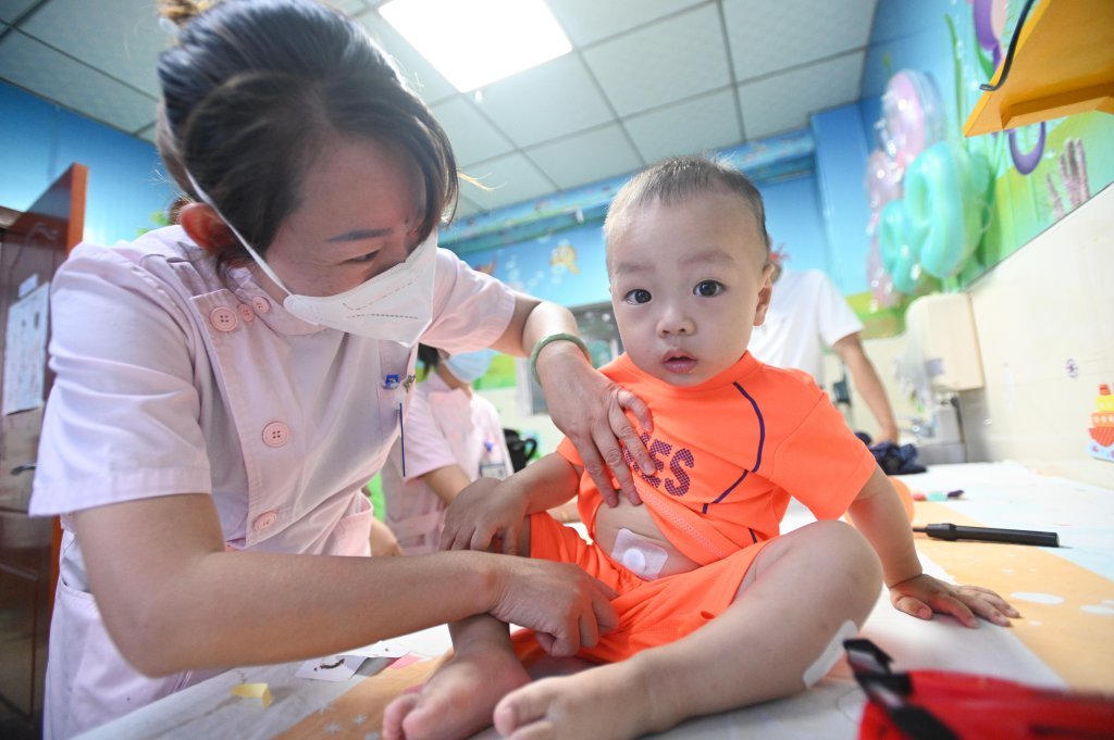 医务人员正在为小朋友贴“三伏贴”。黄正华 摄