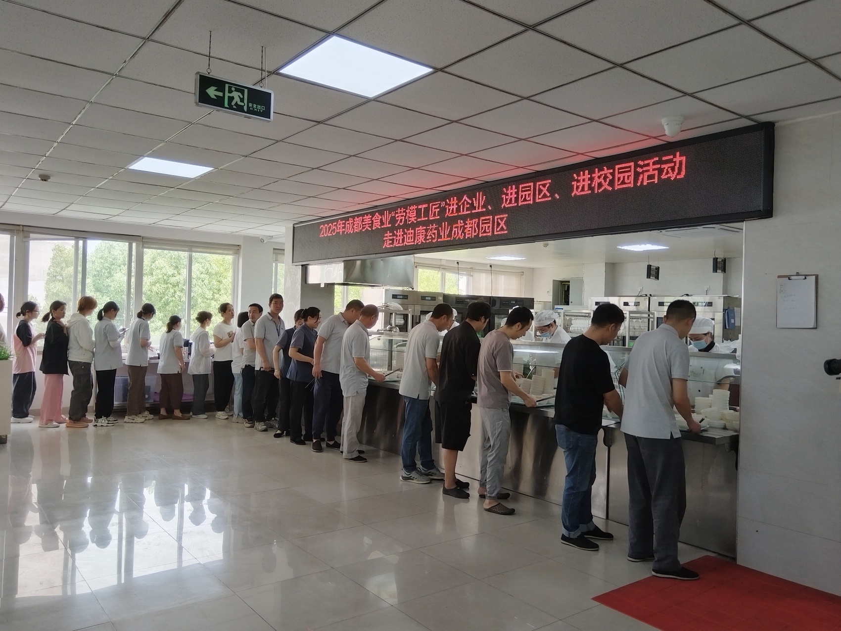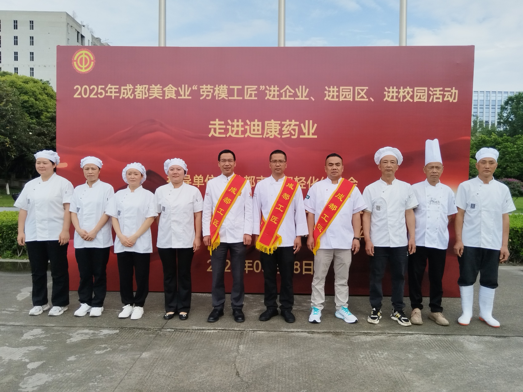 5月8日,由成都市财贸轻化纺工会指导、成都市美食业工会联合会主办的成都美食业“劳模工匠进企业、进园区、进校园”活动走进迪康药业成都园区。成都工匠孙维承、王拥军、王飞携三道匠心菜品入驻企业后厨,通过标准化操作演示、后厨动线优化及营养搭配指导,为园区职工餐食提质注入“烟火温度”。