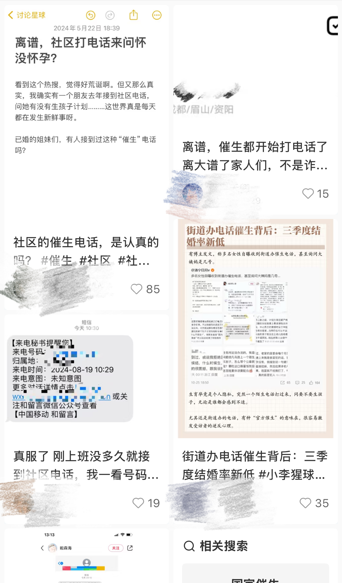 隐私之外,另一个争论在于“电话意图是否为催生”。尽管多个社区工作人员全然否认,但网络流传的多个帖文详细记载了对话过程,包含“你怀孕了吗?”“为什么不想生啊?”“想不想做个孕检?”等直白表述。
