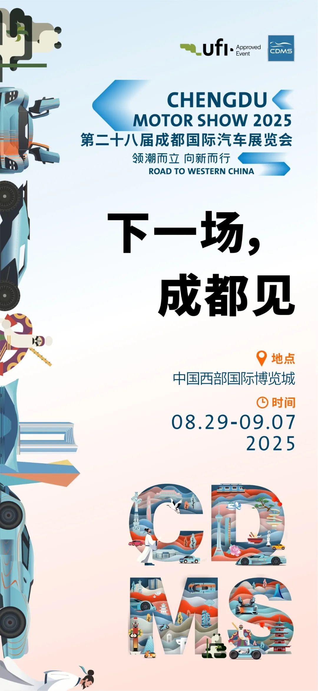 5月8日晚,成都国际汽车展览会组委会宣布,第二十八届成都国际汽车展览会(简称2025成都国际车展)将于8月29日-9月7日在成都中国西部国际博览城举办,主题为“领潮而立·向新而行”。