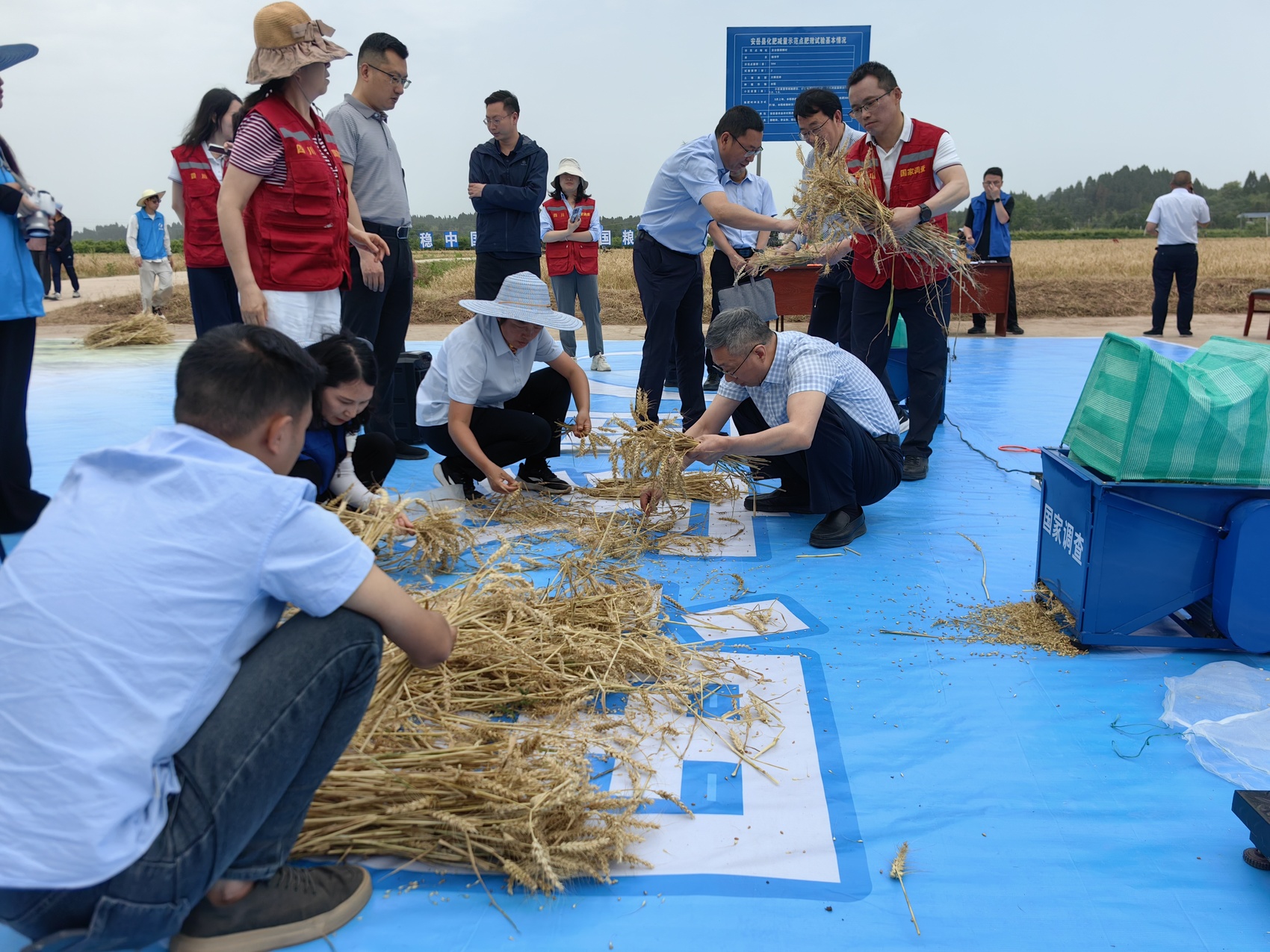 “等一下,收割之前还有一些准备工作要做。”见记者手持镰刀走进麦田,国家统计局资阳调查队农业农村调查科科长宋元媛拉住了记者胳膊。“我们要先划分每个地块的小样本,然后在每个样本点确定收割面积。”