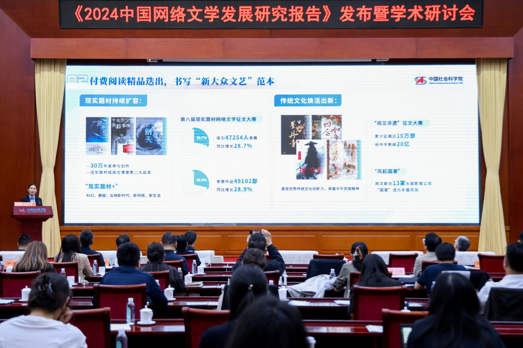 报告显示,网络文学已成为新时代大众文艺的关键力量。截至2024年底,网络文学阅读市场规模达430.6亿,同比增长6.8%;IP市场规模大幅跃升至2985.6亿元,同比增长14.6%。网文作者规模首次突破3000万大关,达3119.8万,作品数量多达4165.1万部,用户数量达5.75亿,同比增长10.58%,超半数中国网民热衷于追读网文“在线催更”。2024年,现实题材和传统文化题材佳作频出,第八届现实题材网络文学征文大赛吸引逾30万作家参与,“阅见非遗”“风起国潮”等征文活动成果丰硕,在弘扬主流价值、传承文化上作用凸显。