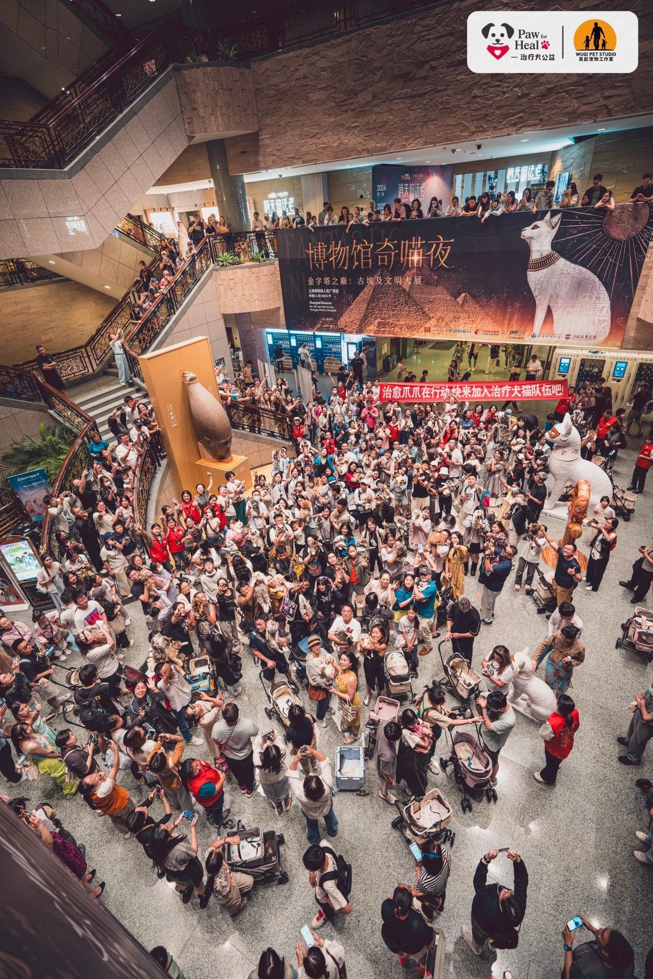 上博举办的“博物馆奇喵夜”让爱宠人士带猫观展,观众合影现场。上海博物馆供图