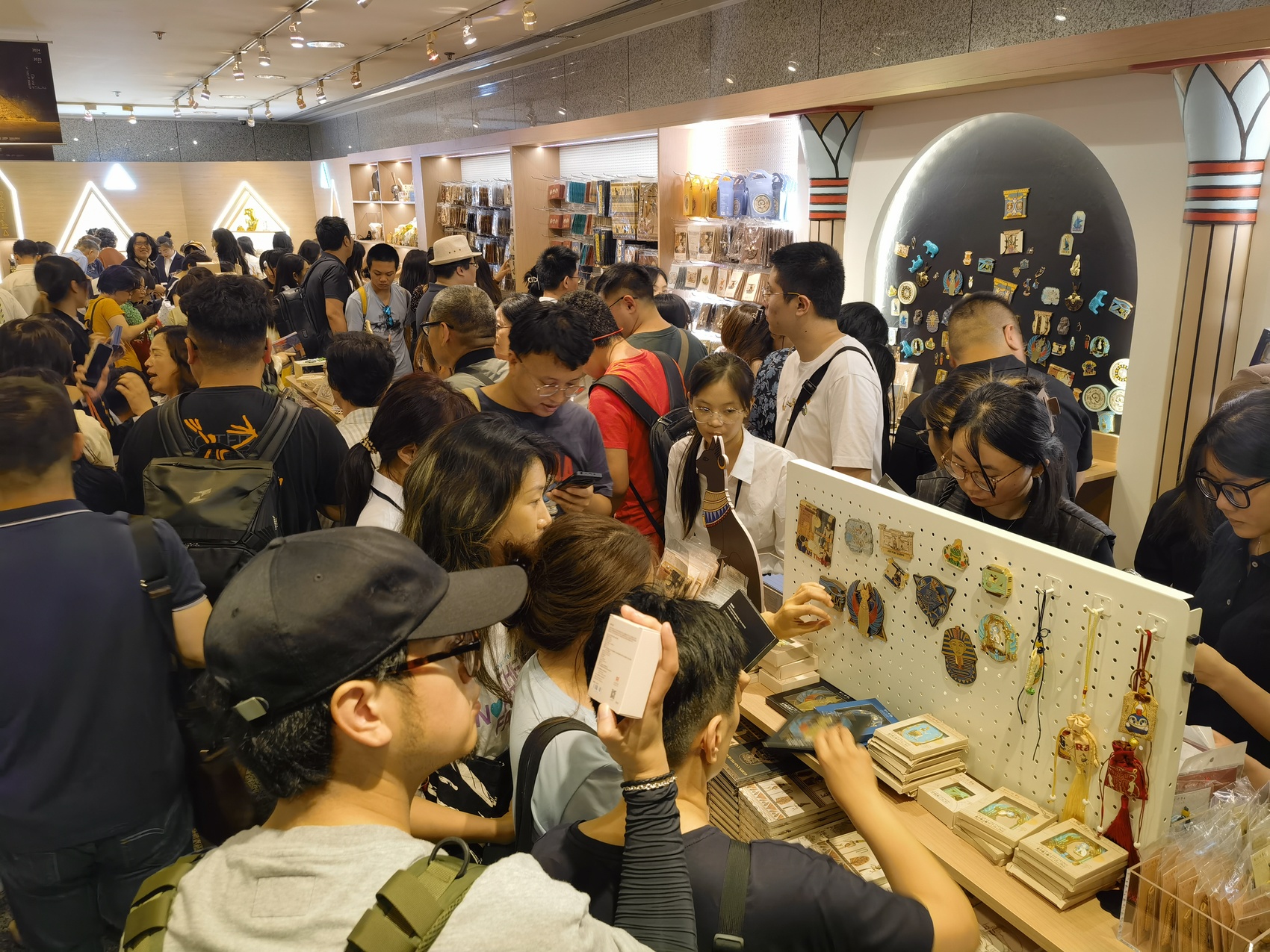 观众在上海博物馆购买“金字塔之巅”展系列文创产品。上海博物馆供图