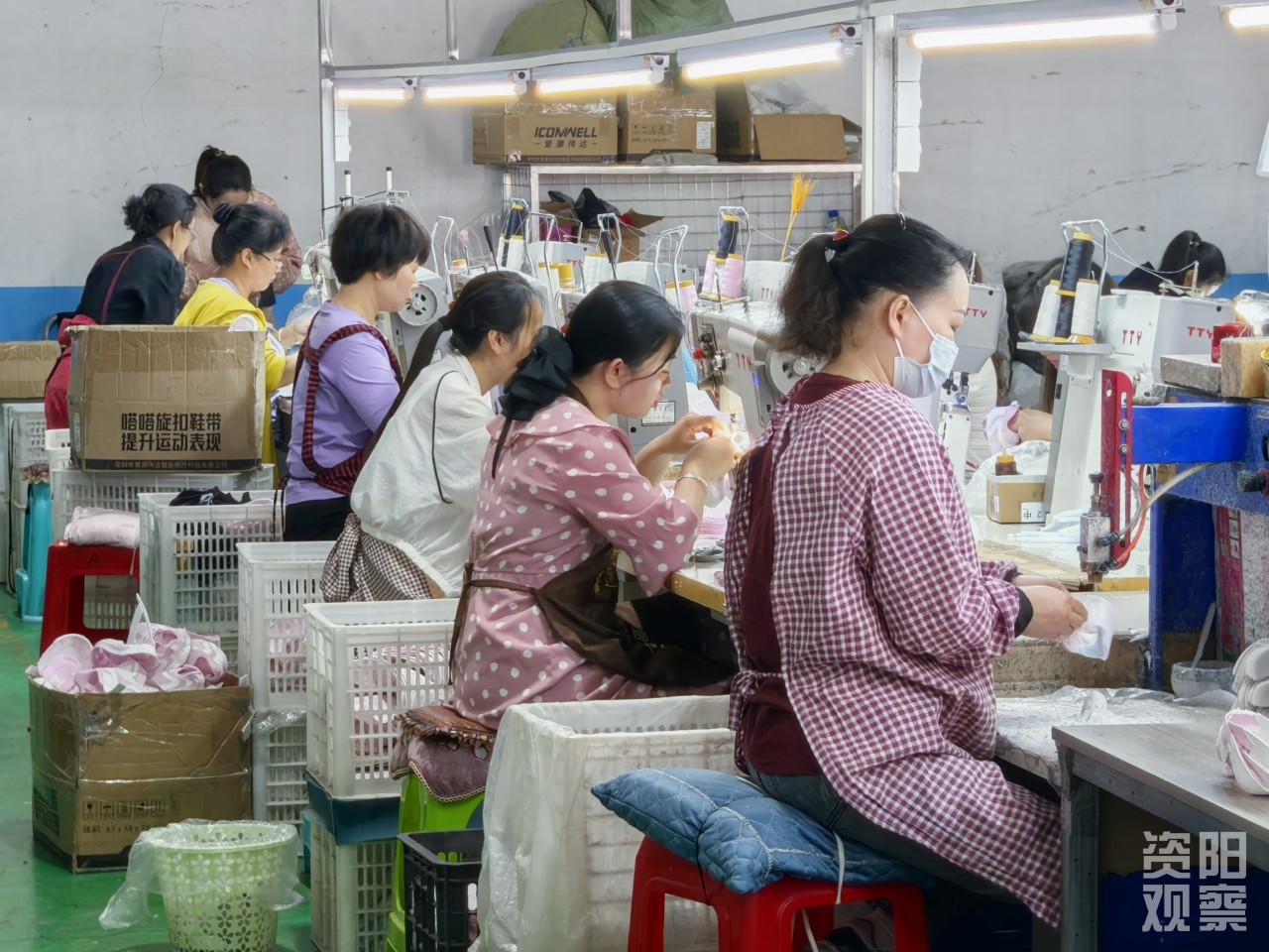 不止是周礼镇,截至目前,安岳全县46个乡镇(街道)中已经有32个乡镇设立117户鞋服“卫星工厂”,5000余名农村劳动力实现就近就业,其中“妈妈工”占比达70% 。