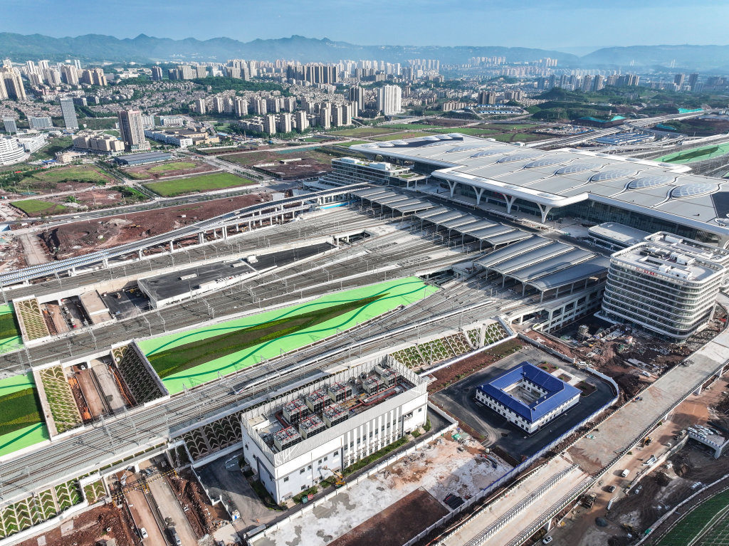 5月9日,55901次检测车从重庆东站驶出(无人机照片)。