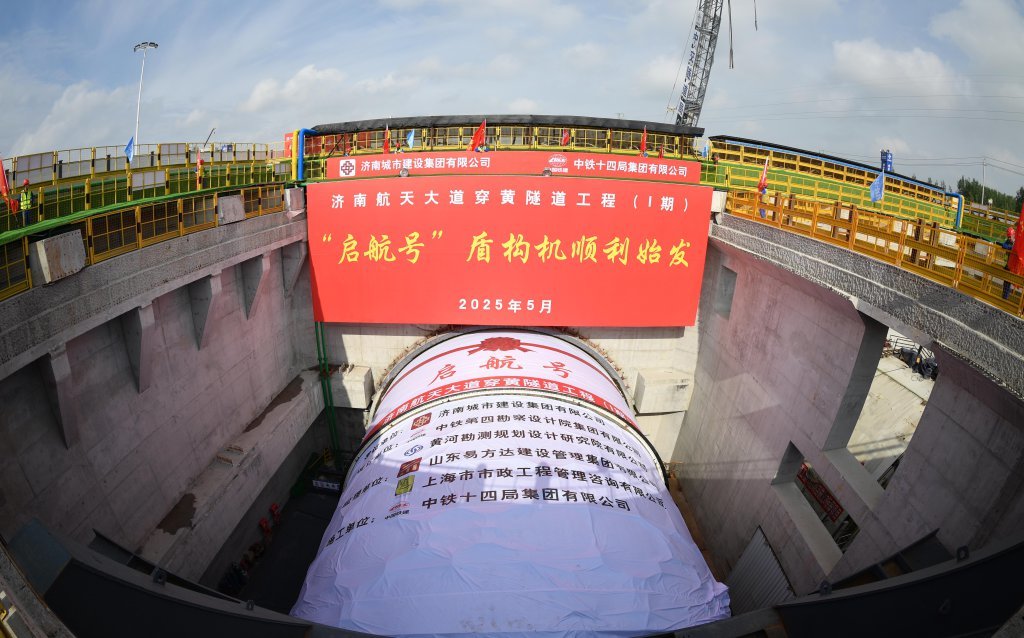 当日,由济南城市建设集团投资建设、中铁十四局承建的济南航天大道穿黄隧道工程南线“启航号”盾构机顺利始发,开挖直径达15.06米。