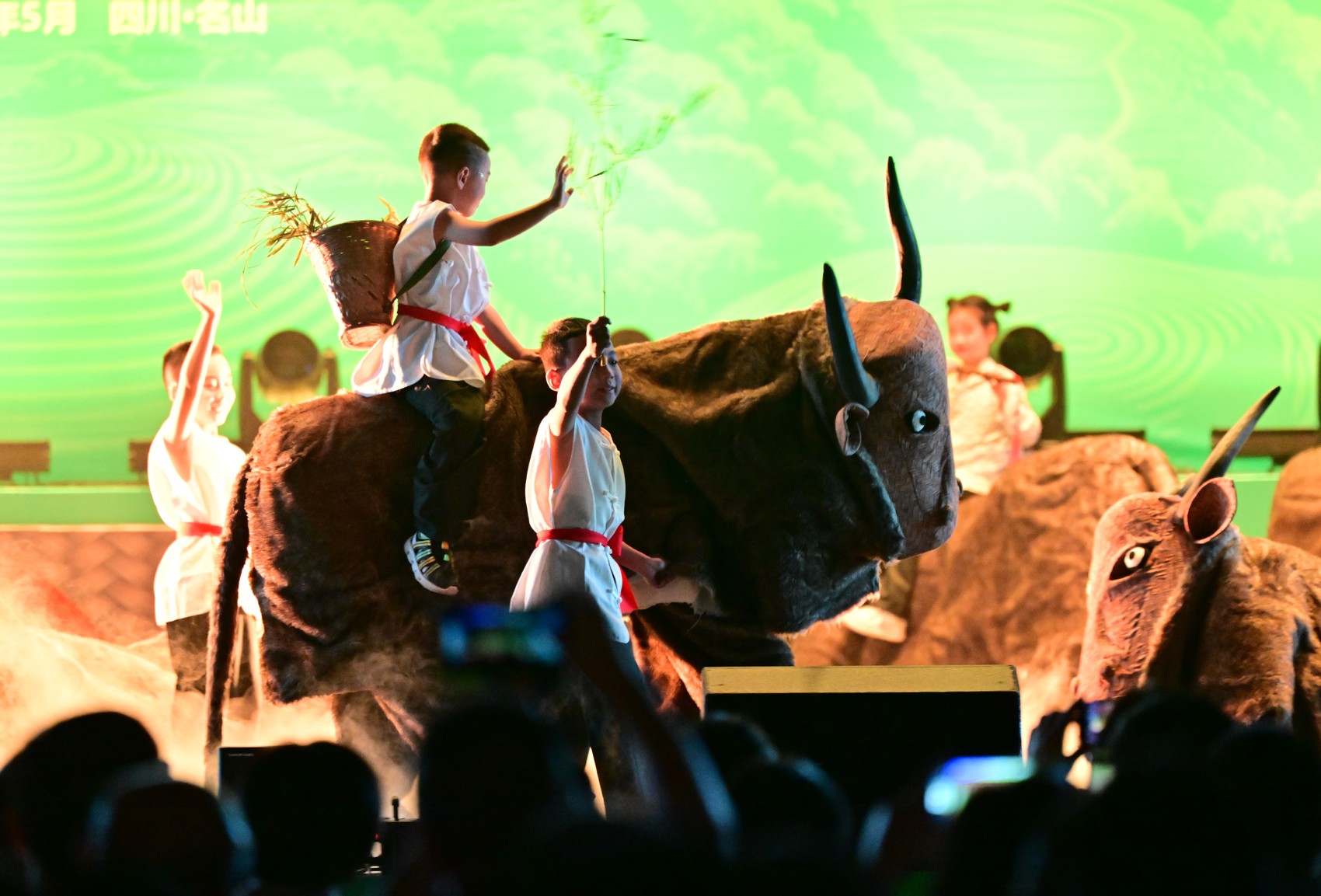 展演活动特设“迎夏仪式”环节。嘉宾将象征丰收的麦穗归仓,祈愿五谷丰登、国泰民安,更为次日村跑鸣响精神前奏。尾声《我们的新时代》以青春歌舞点燃全场,当蒙顶茶山与数字光影在舞台共舞,乡村振兴的勃勃生机已如新芽舒展,寓意着以奋斗者的精神风貌迎接新时代,开辟乡村振兴事业的蓬勃未来。