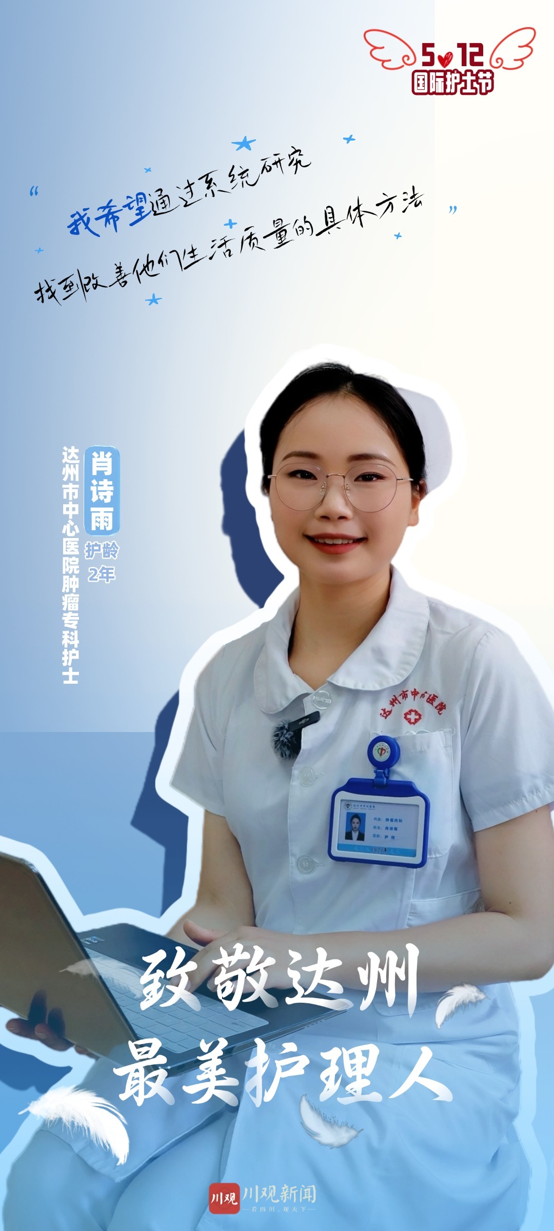 她们是生命的守护者,用专业与温情托起希望的微光;她们是平凡的英雄,在昼夜交替中书写无声的誓言。5月12日,国际护士节如期而至,我们联合达州市卫生健康委员会开设《致敬达州最美护理人》特别栏目,致敬忙碌在医护一线的护理工作者。