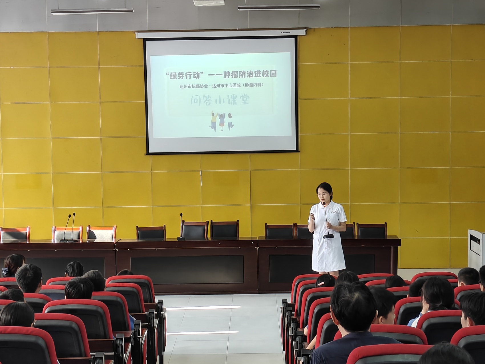 肖诗雨在校园开展肿瘤防治宣讲。