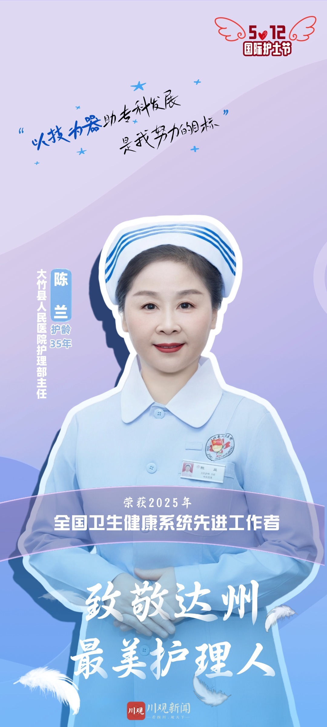 她们是生命的守护者,用专业与温情托起希望的微光;她们是平凡的英雄,在昼夜交替中书写无声的誓言。5月12日,国际护士节如期而至,我们联合达州市卫生健康委员会开设《致敬达州最美护理人》特别栏目,致敬忙碌在医护一线的护理工作者。