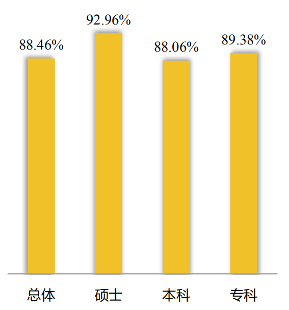 川观新闻1月6日从川北医学院获悉,学校发布了《2020届毕业生就业质量年度报告》。报告显示,川北医学院2020届毕业生3788人。专科毕业生113人,本科毕业生3391人,硕士毕业生284人。截止12月16日2020 届毕业生总体就业率为88.46%;毕业生就业分布在全国27个省(直辖市、自治区),在四川省内就业的人数占总就业人数的85.28%;从就业单位性质来看,毕业生主要就职于医疗卫生单位(75.05%);从就业行业分布来看,毕业生主要从事于卫生和社会工作(82.12%)。