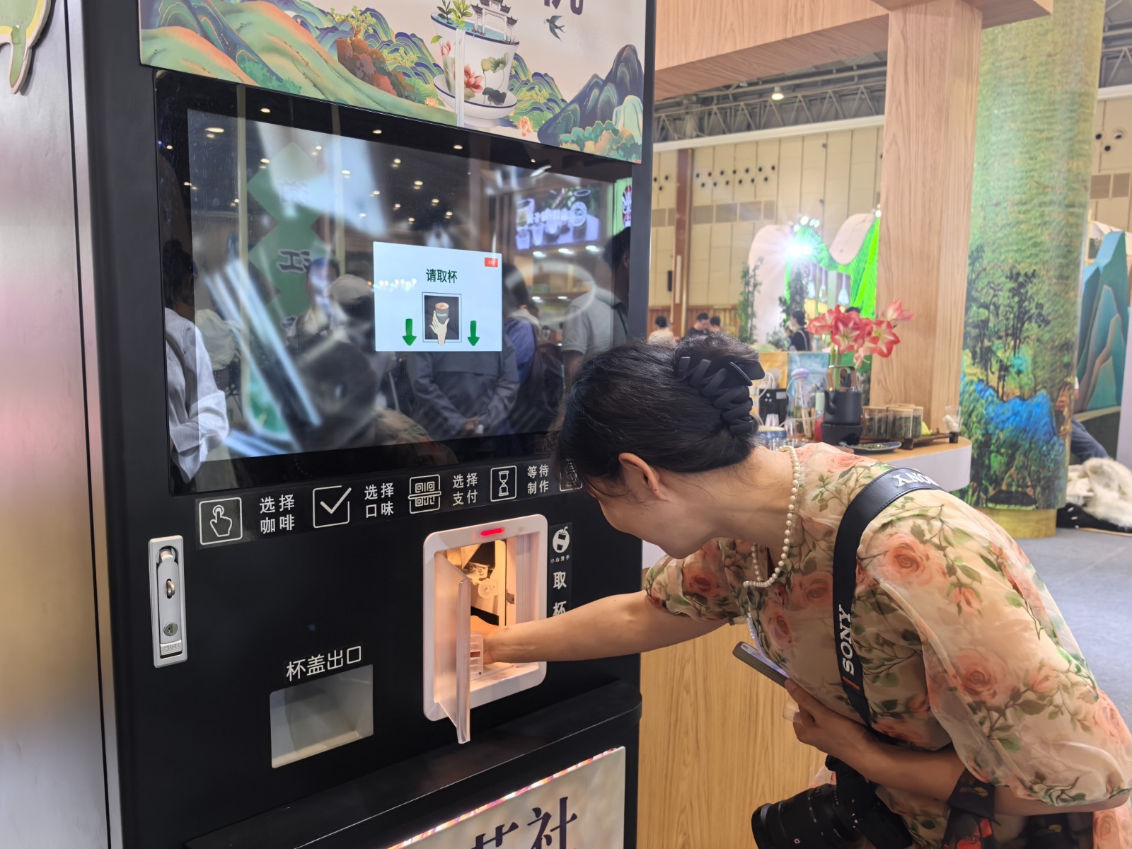 点击屏幕选择口味、扫码支付、取杯品尝……“绵密香甜,比我预想中的口感还好。” 王女士赞不绝口,主动向身旁好奇围观的观众热情推荐。
