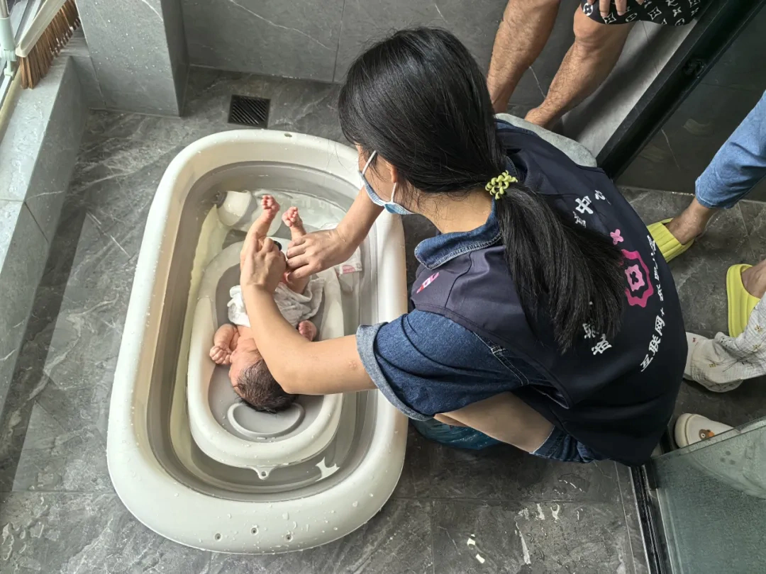 上门护士指导父母为新生儿居家沐浴