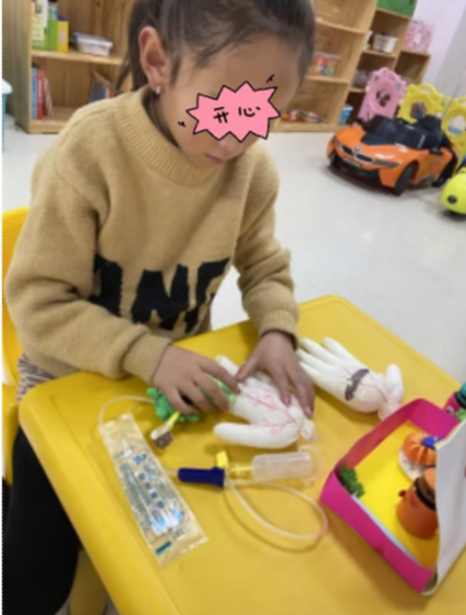 害怕打针的患儿在体验静脉穿刺游戏包