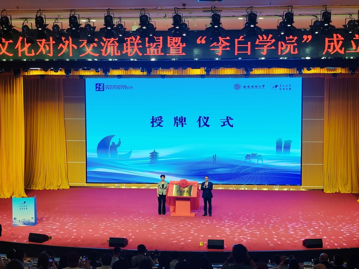 活动现场,绵阳市、江油市及各院校代表共同启动成立了巴蜀文化对外交流联盟,西南财经大学党委常委、副校长李志生代表巴蜀文化对外交流联盟理事长单位向李白纪念馆授牌“李白学院”,这标志着江油在深化校地合作、推动文化国际传播方面迈出关键一步。