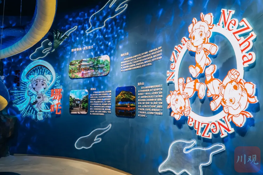 在宜宾街头,随处可见哪吒元素:跨江大桥桥头的“哪吒闹海”雕塑、绿道上的“涅槃重生”图案、哪吒主题游乐园、哪吒文化体验馆、哪吒非遗面塑……它们吸引了来自全国各地的游客打卡。