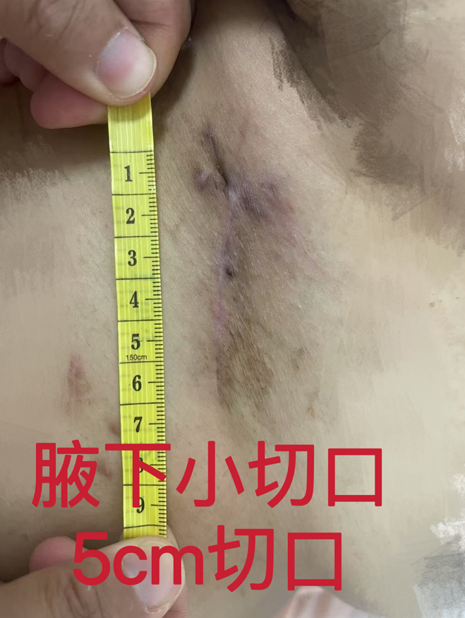 “此外,切口位置的选择也极具匠心。”曹安强补充说,它位于腋窝自然皱褶处,患者术后恢复后,即便抬起手臂也不容易发现手术痕迹。