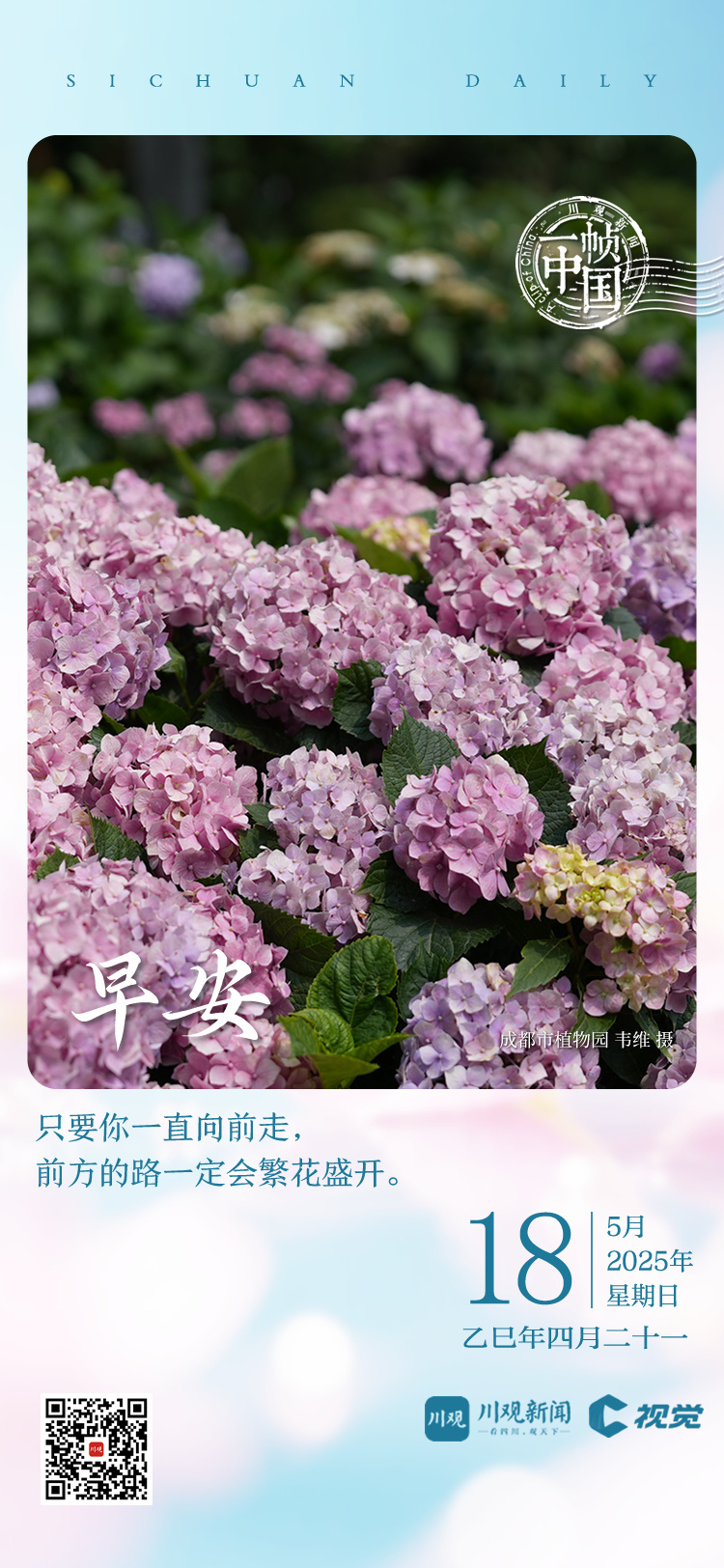 今天的《一帧中国》,川观新闻与你一起来到成都市植物园,欣赏绣球花带来的自然色彩魔法。