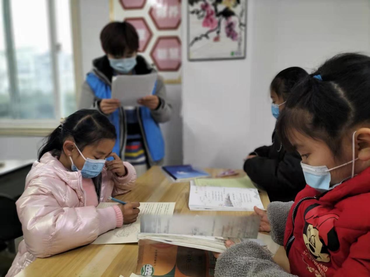 周末的寿安镇未成年人保护站活动室内,大学生志愿者正在黑板前勾画重点。开朗的13岁女孩珠珠,不时回答着老师的提问。