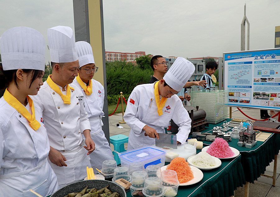 跟着美食去旅行,带火了乐山,也让四川省乐山市第一职业高级中学近年来的烹饪专业十分火爆。副校长周晓玲自豪地说,去年原计划只招1个班,最后扩大到3个班。从课程标准到课题开发,一职中烹饪专业教育教学已经渐成体系,还将建设一个乐山地方特色美食展馆,致力要打造职教界的“乐山美食传承名片”。现场表演完刀工,来自小凉山上峨边大堡镇的彝族同学吉克小布腼腆地说,自己要好好考大学,带着乐山美食去成都。