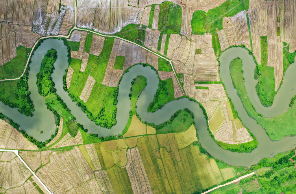 这是5月15日拍摄的海口三十六曲溪两岸的稻田(无人机照片)。