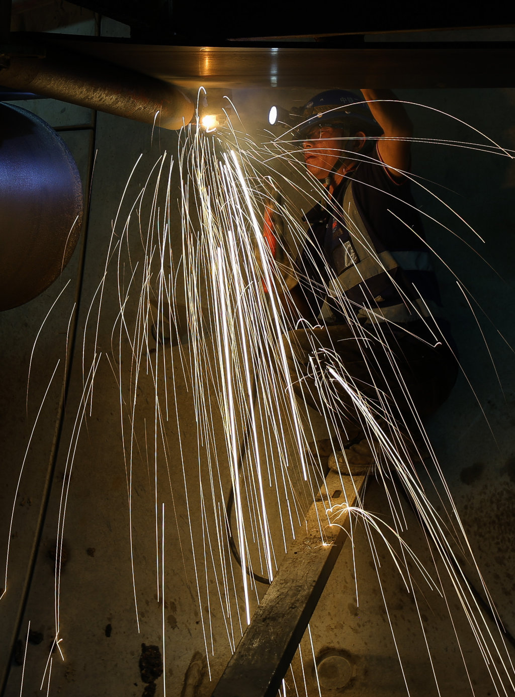 5月15日,施工人员在维护穗莞深城际前皇盾构区间盾构机泥浆传输带。