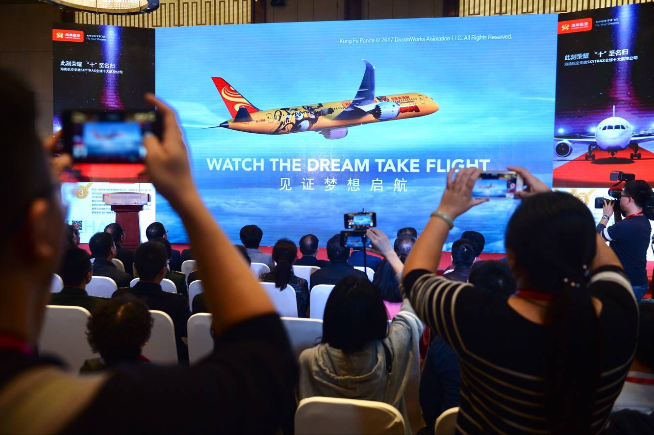 海航目前拥有22架波音787客机,是中国内地拥有最大在役波音787机队的航空公司。在今年3月开通的成都直飞洛杉矶航线上,海航同样采用的是波音787客机执飞,并涂上了红色的熊猫“阿宝”涂装。