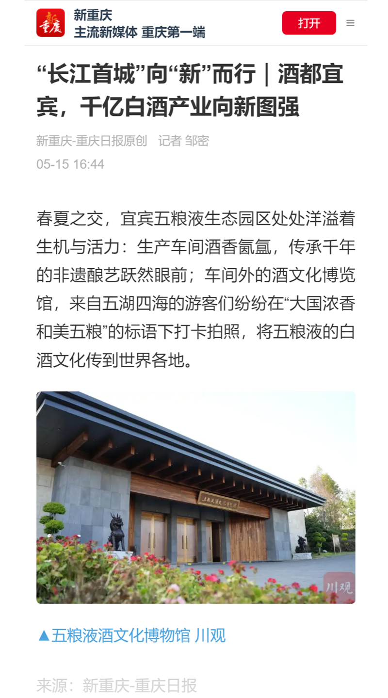 聚焦宜宾白酒产业,从五粮液品牌传承与创新、产业高质量发展两个维度出发,展现了其强化品控管理、推动数字化转型及酒文旅融合等举措,体现了宜宾白酒产业迈向“世界级优质白酒产业集群”的新发展态势。