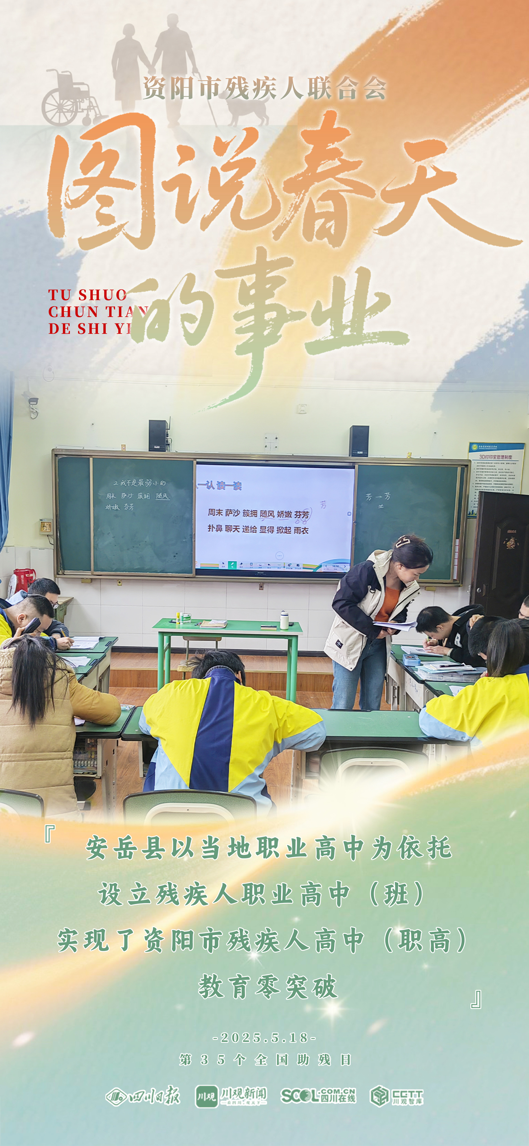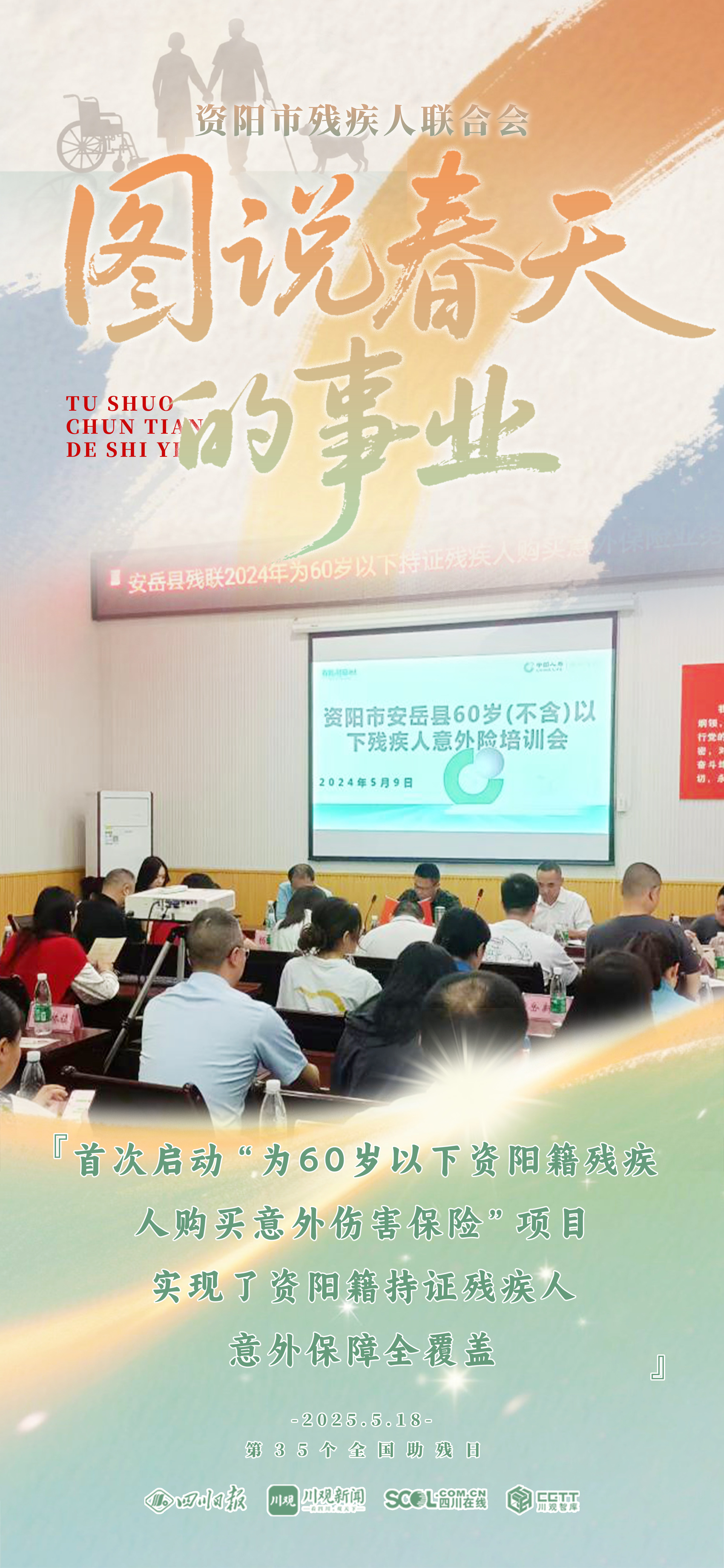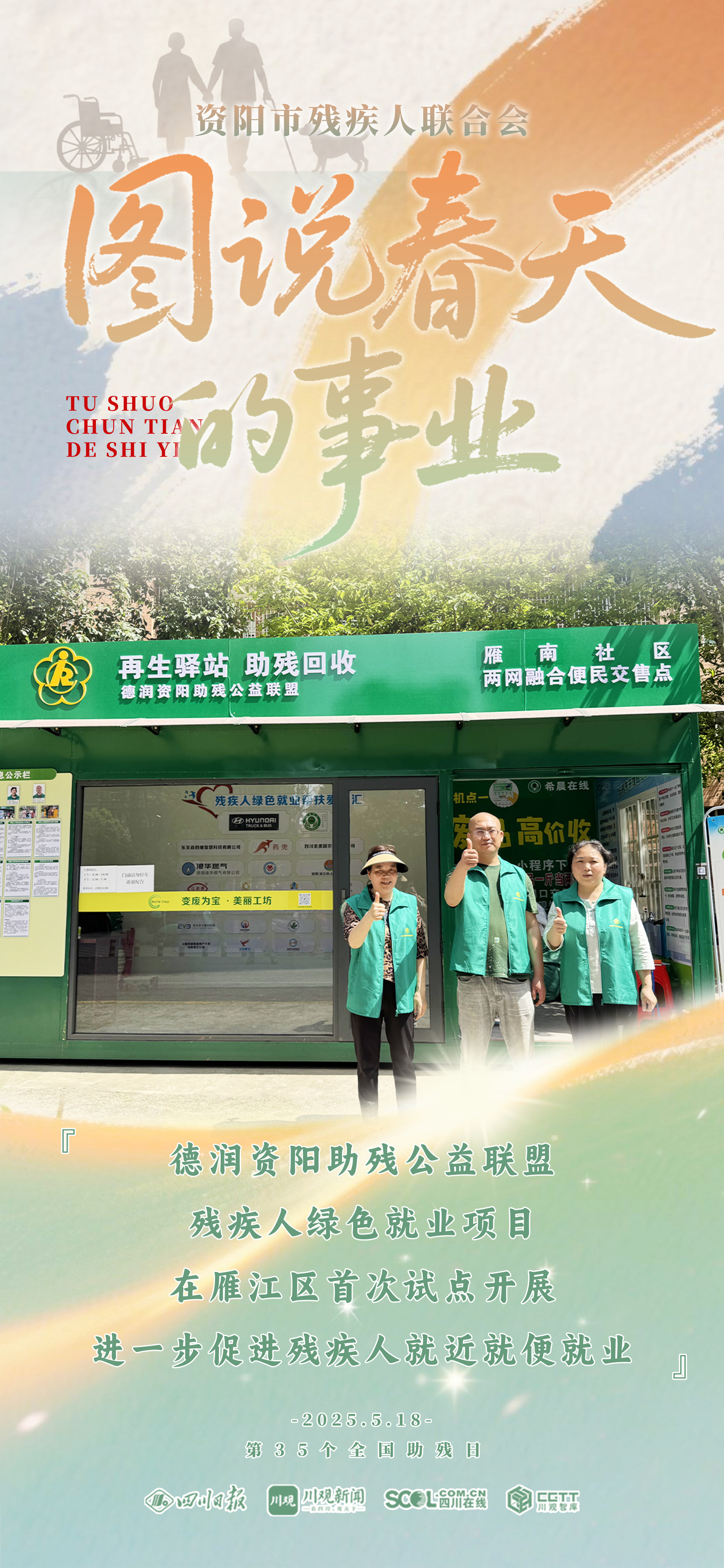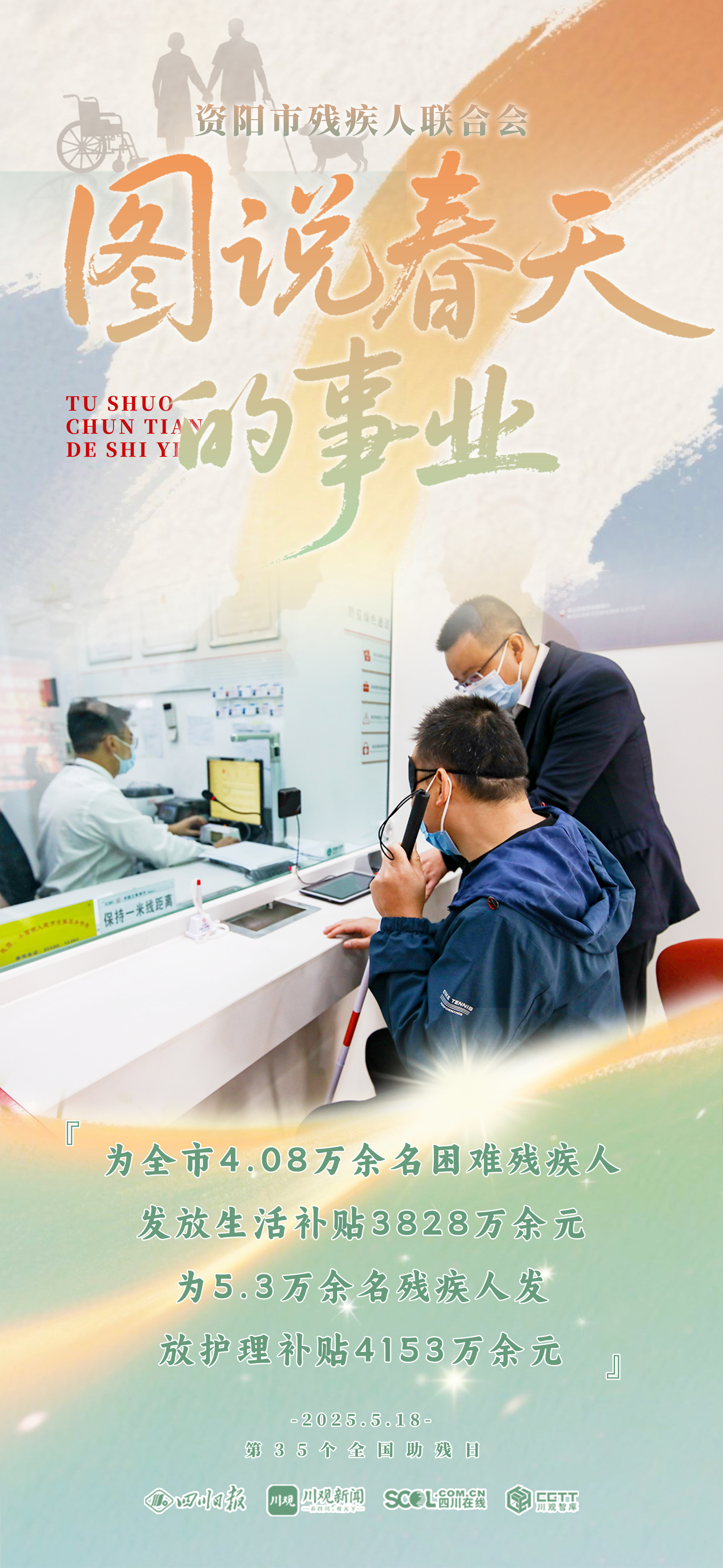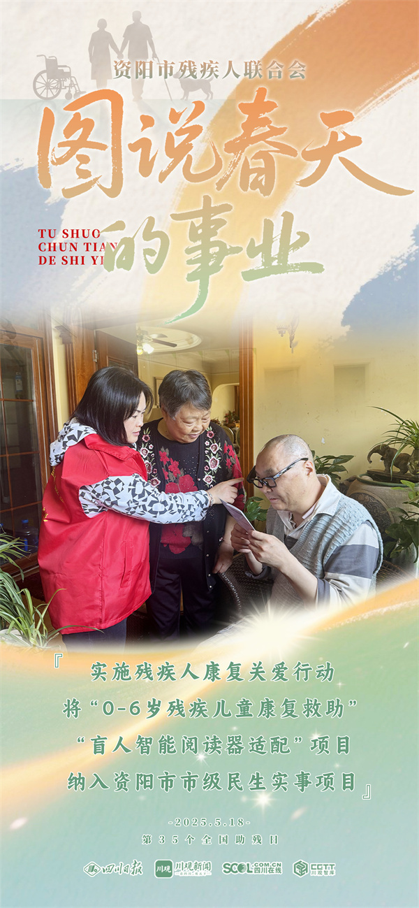 第三十五个全国助残日来临之际,四川日报资阳全媒体中心联合资阳市残疾人联合会,共同推出《图说资阳“春天的事业”》,通过9张海报,一起来看残疾人“稳稳的幸福”。