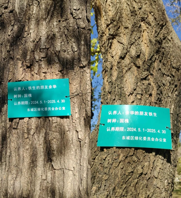 地坛公园里两棵被认养的国槐成了网红打卡点 图据新京报