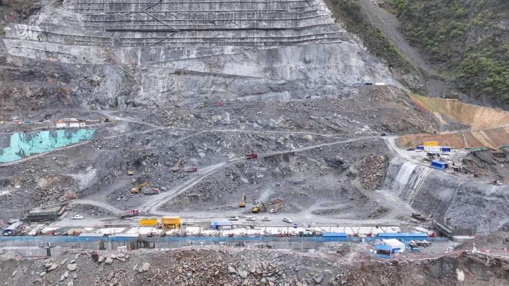走进施工现场,一幅壮阔的高原建设画卷令人震撼。在上库进水口作业区,数十台重型机械正开足马力,挖掘机挥舞铁臂,运渣车川流不息,工人们顶着高原强烈的紫外线,紧张有序地进行着边坡开挖和混凝土浇筑。主厂房内,凿岩机的轰鸣声回荡在岩壁之间,技术人员手持建设图纸,与施工团队反复核对着每一个细节参数。