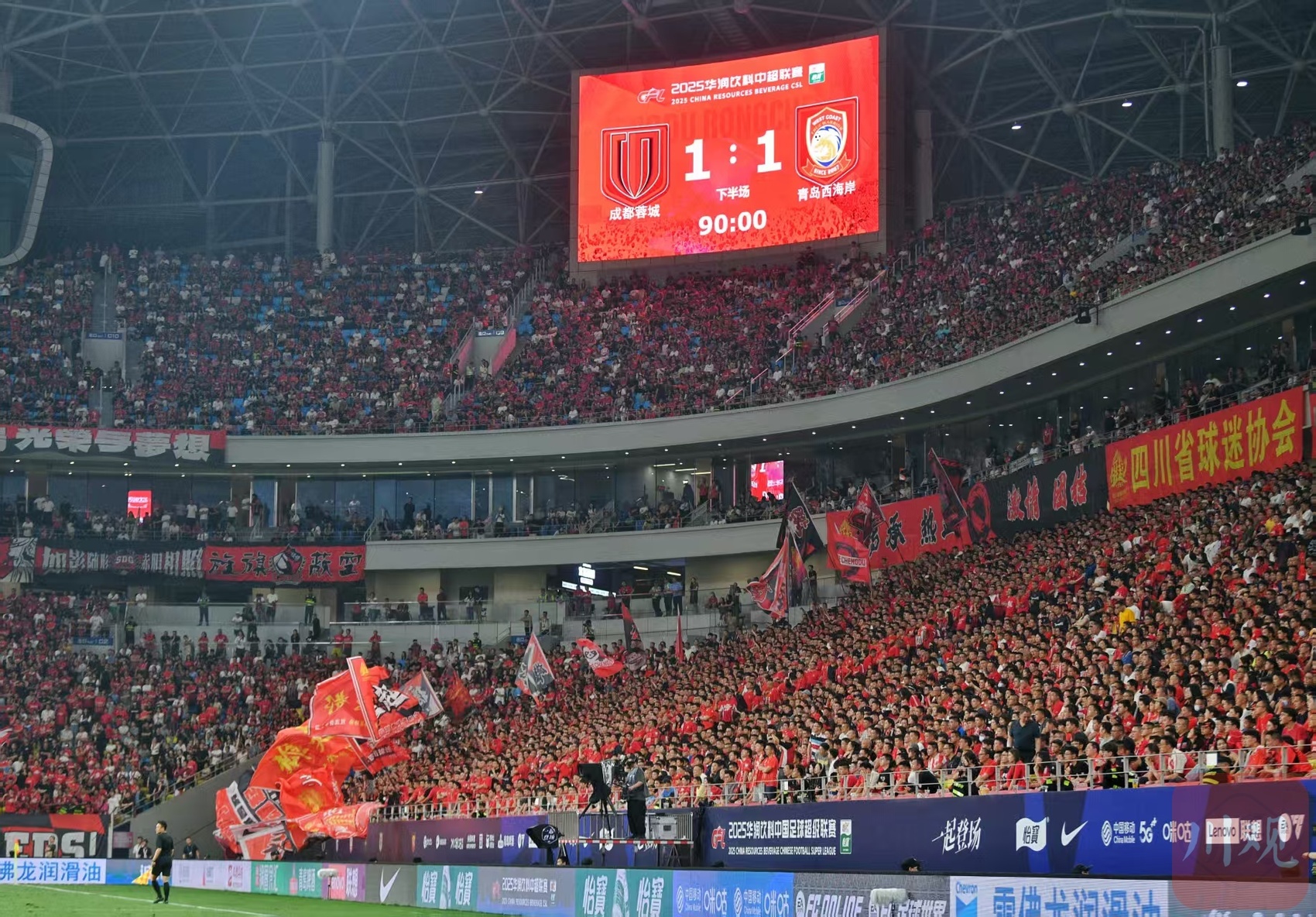 成都蓉城1:1与青岛西海岸握手言和。