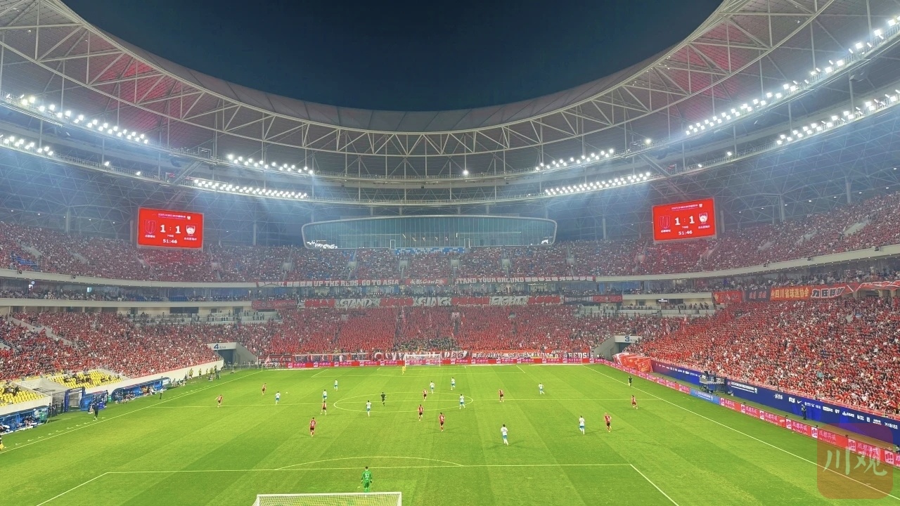 5月17日晚19:35,专业足球场内2025中超联赛第13轮成都蓉城vs青岛西海岸吹响开场哨声,超过4万名球迷尽情享受足球盛宴。(图据五粮液文化体育中心官微)