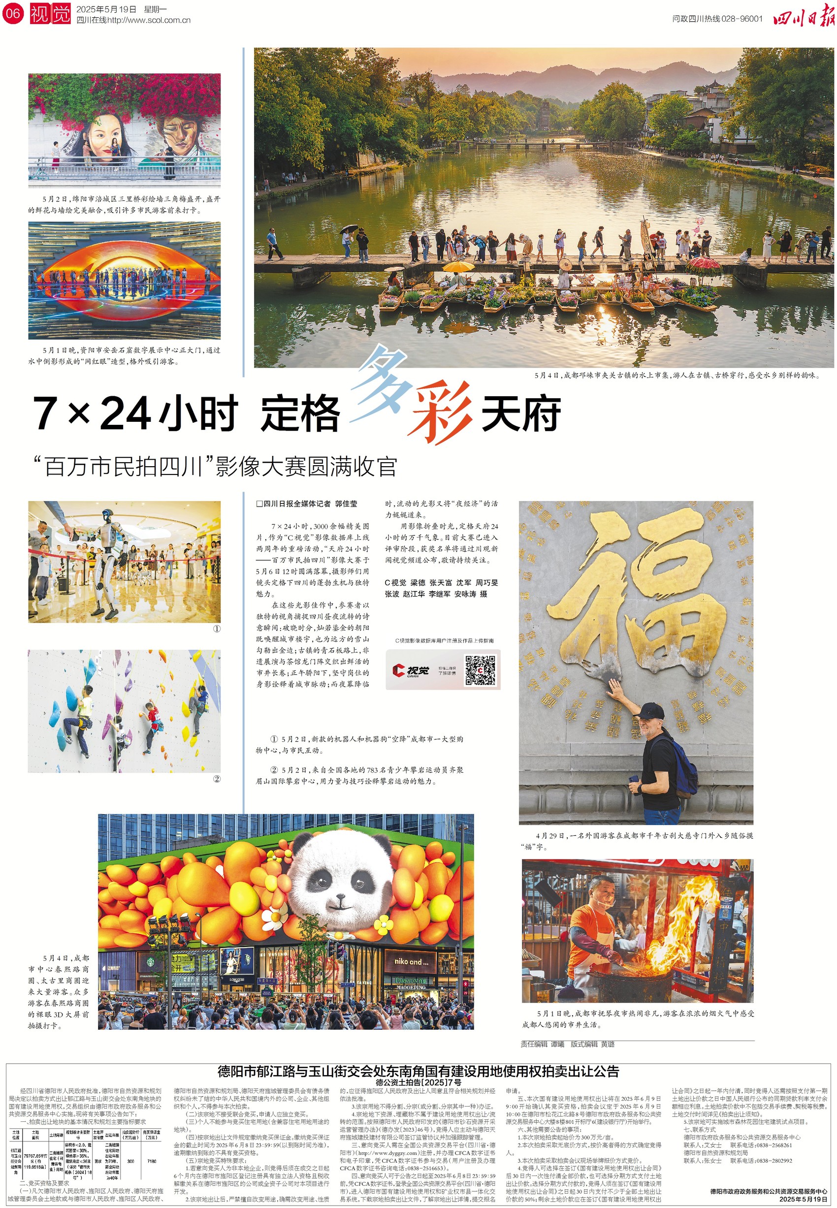 用影像折叠时光。7x24小时,3000余幅精美图片……作为“C视觉”影像数据库上线两周年的重磅活动,“天府24小时——百万市民拍四川”影像大赛于5月6日12时落幕,摄影师们用镜头定格下四川的蓬勃生机与独特魅力。关注今日六版,一起欣赏天府24小时的诗意瞬间。