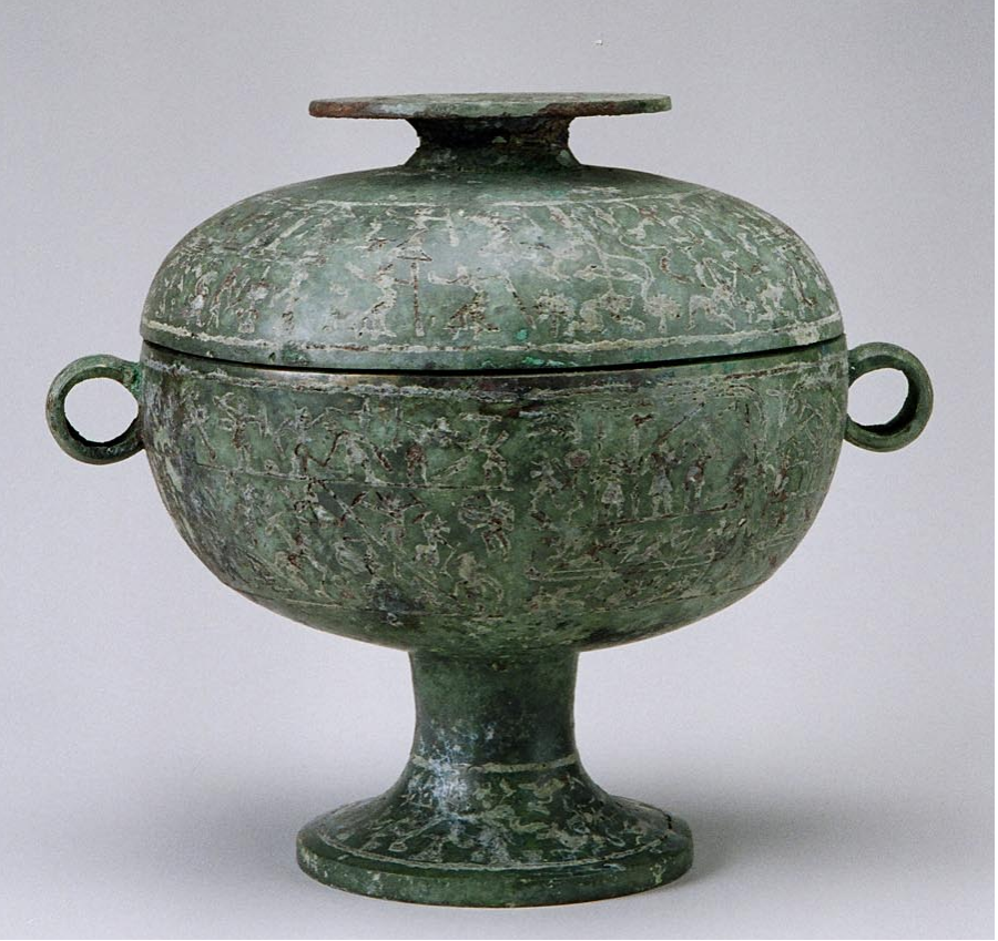 罗家坝遗址出土的文物——嵌错水陆攻战纹铜豆