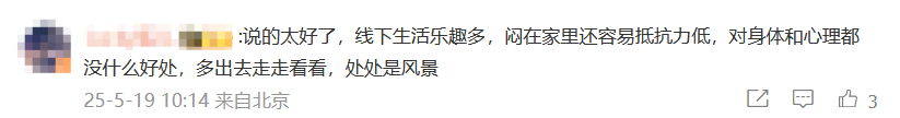 有网友表示,线下生活很重要,要多出去走走看看。