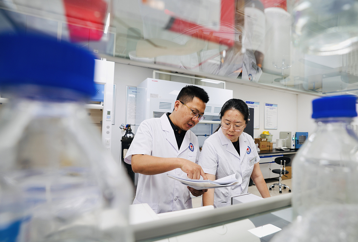 贾涛与同事在实验室工作