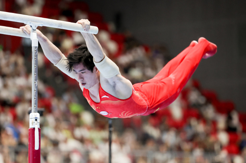 5月19日,张博恒在双杠比赛中。新华社记者 许雅楠 摄