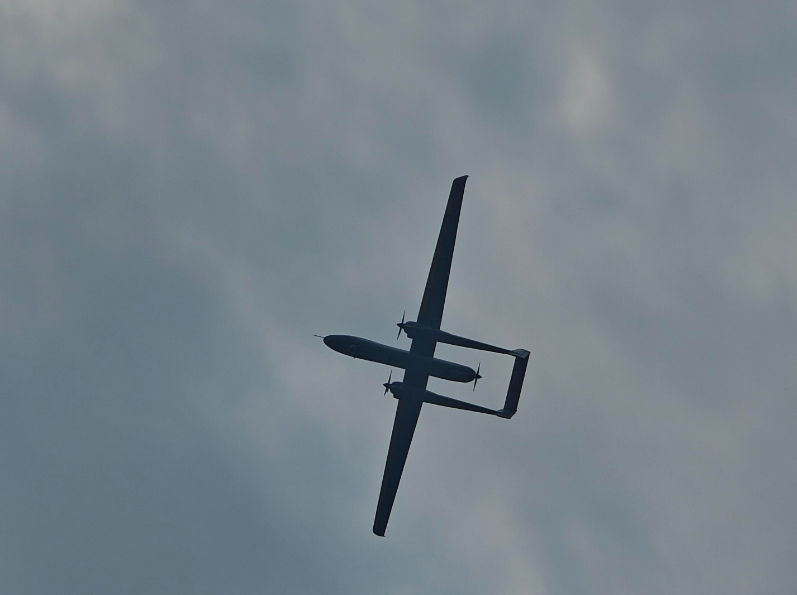 人工影响天气专用型“双尾蝎A”无人机系统在飞行中。新华社记者 谢佼 摄