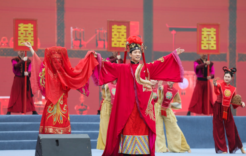 5月19日,传统婚俗表演在2025年“5·19中国旅游日”主会场活动上举行。新华社记者 徐昱 摄