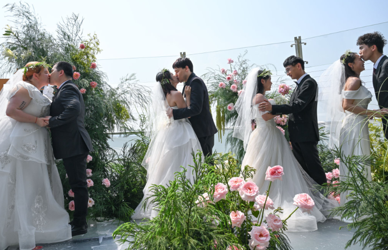 当日,11对来自中外的新人在重庆市渝中区来福士洲际酒店SHUA高空露台举办了“爱·‘渝’见‘中’情”520云端集体婚礼。婚礼上还进行了拓印、非遗剪纸等民俗展示。