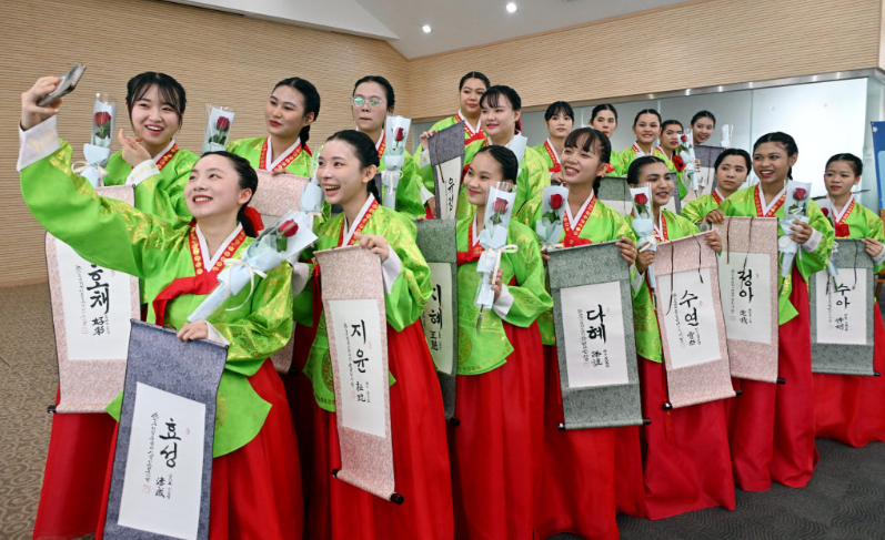 当日,韩国淑明女子大学为即将成年的外国留学生举行韩国传统的成人礼。韩国将每年5月的第三个星期一定为“成年日”。