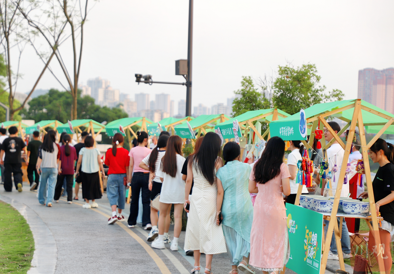 美食区的人气同样火爆。咖啡、鲜榨果汁受到市民游客喜爱,成为拍照打卡新宠;卤虾摊位香气四溢,老板热情地邀请市民游客来“嗦虾”;冰粉摊主把水果与各式小料巧妙融合,碗里盛满“夏日清凉”。