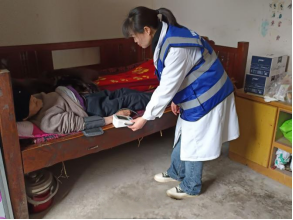 健康书记杨高平团队携带便携式医疗设备来到洗马村失能老人周大爷家中,为他进行免费健康体检,体检项目包括一般体格检查、心电图、B超等检查项目,还对其进行中医保健指导。同时,对家属进行卧床病人的护理技巧指导。