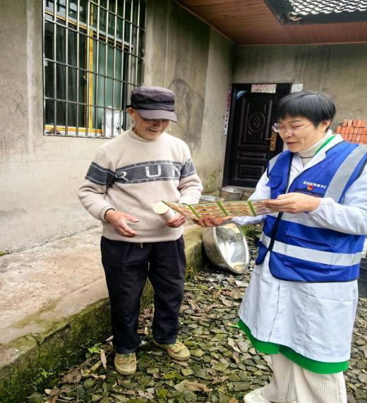 图为健康书记入户发放健康教育资料